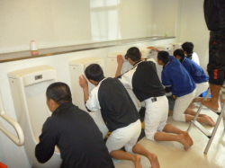 場所は大垣東高校です。ソフトテニス部と野球部の生徒さんが中心となって、トイレ掃除を行ないました。