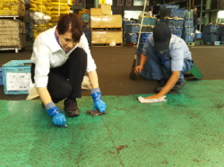お昼の環境整備を毎日30分コツコツと続けています。 今日は、ジュエリー置場(汚れ置場)の床の清掃をしました。 ここは、洗濯する前のウエス等を置いている場所なので、床が油で汚れてしまいます。 先輩社員Sさんを見習って、カンボジアのPさんも一生懸命床磨きをしました。 Pさんを見ていると、仕事にも環境整備にも少しずつですが、慣れてきたように感じます。 言葉はあまり通じませんが、いつも周りを見て、すぐに真似して頑張っています。分からないことをすぐ聞くことも大事ですが、目で見て学ぼうとする姿勢はすごいと思います。私も見習っていきたいです。 ありがとうございました♪