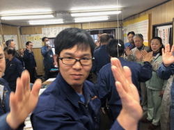 毎週月曜日は全体朝礼を行います。 業務の都合上、全員が集まることが少ないので、貴重な時間となります。 情報共有を行った後、朝礼の最後に「ハイタッチ」を行います。 これは、「お互いがんばっていこう!」という、やる気スイッチを押すために実施しています。 ハイタッチもただの手を合わせるだけか、スイッチを入れるかはそれぞれの考え方ですが、このハイタッチは個人的には面白く、スイッチが入るので、続けていきたいと思っています。 サービスマン、営業マンの方々、今日もご安全にいってらっしゃい! ありがとうございました♪